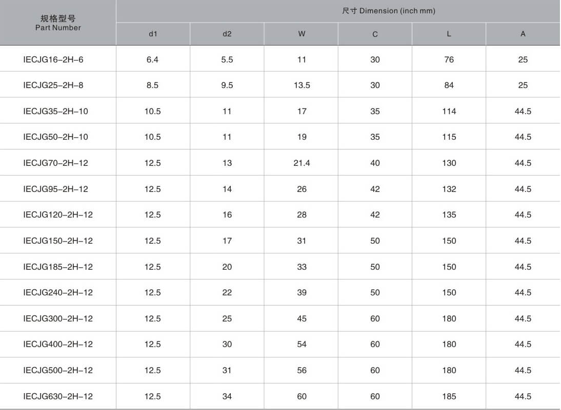JG型两孔接线片资料
