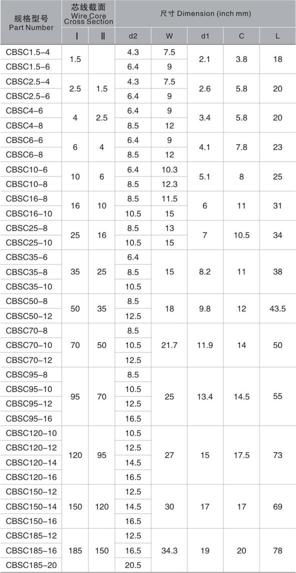 SC型铜接线端头资料
